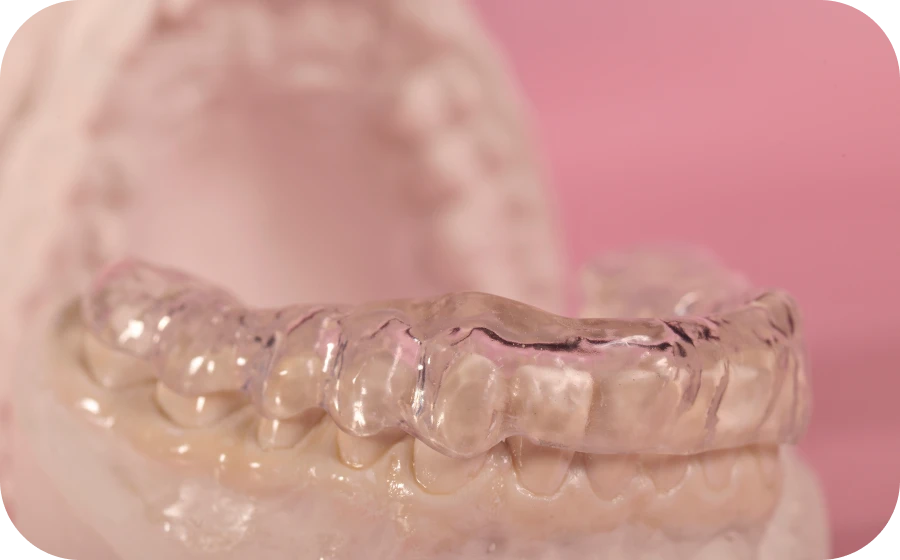 Dans de nombreux cas, le praticien prescrit une gouttière occlusale sur mesure. Cette fine plaque en résine, portée la nuit ou parfois le jour, agit comme un véritable dispositif thérapeutique. Elle détend les muscles, repositionne la mâchoire et réduit l’impact du bruxisme (grincement ou serrement des dents). Elle joue également un rôle protecteur en limitant l’usure prématurée de l’émail et en préservant les restaurations prothétiques.
